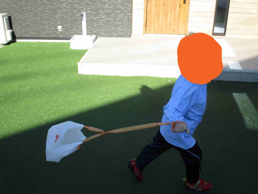凧作りはビニール袋に絵を描いたり、シールを貼ったりと飾りつけをして、スズランテープの持ち手を付けました❗完成した凧を持って外で冷たい風を感じながら走りました💨
