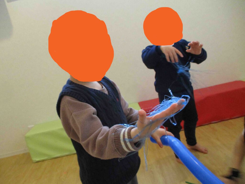 静電気あそびは、こすったスズランテープを顔や身体、壁にくっつけたり、風船で反発させてみたりと楽しそうに遊んでいました🩷子どもたちの不思議そうな顔から楽しそうな顔までいろいろな表情を見ることが出来ました😆