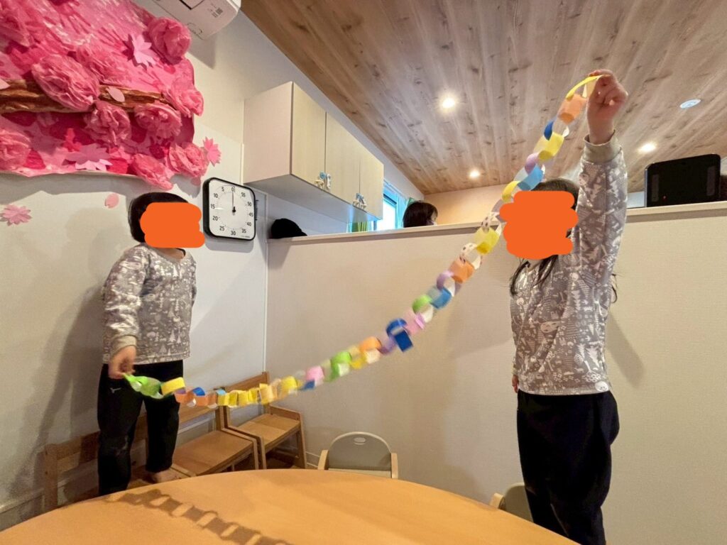 お別れ会の部屋の飾りつけも(輪飾りやちゅうりっぷ)子どもたちと一緒に製作しました🌷